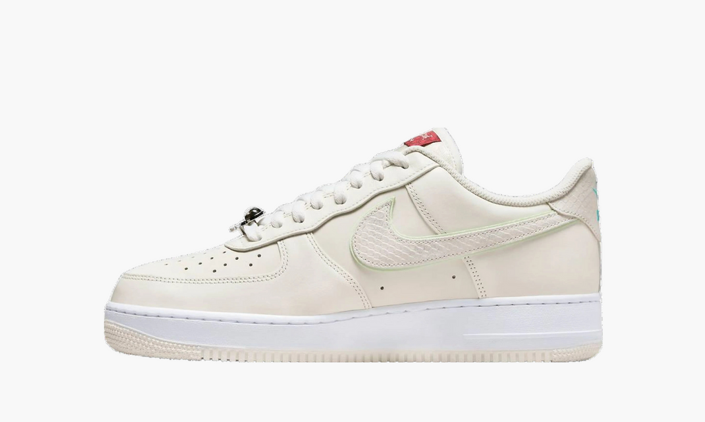 In 2021, Nike released a special edition Air Force 1 for women—the Nike Air Force 1 Low LX Lucky Charms White. Featuring the signature smooth white leather upper, this edition stood out with its gold chain adorned with Nike charms and gold embroidered branding on the heel, elevating its classic appeal with a luxe touch.