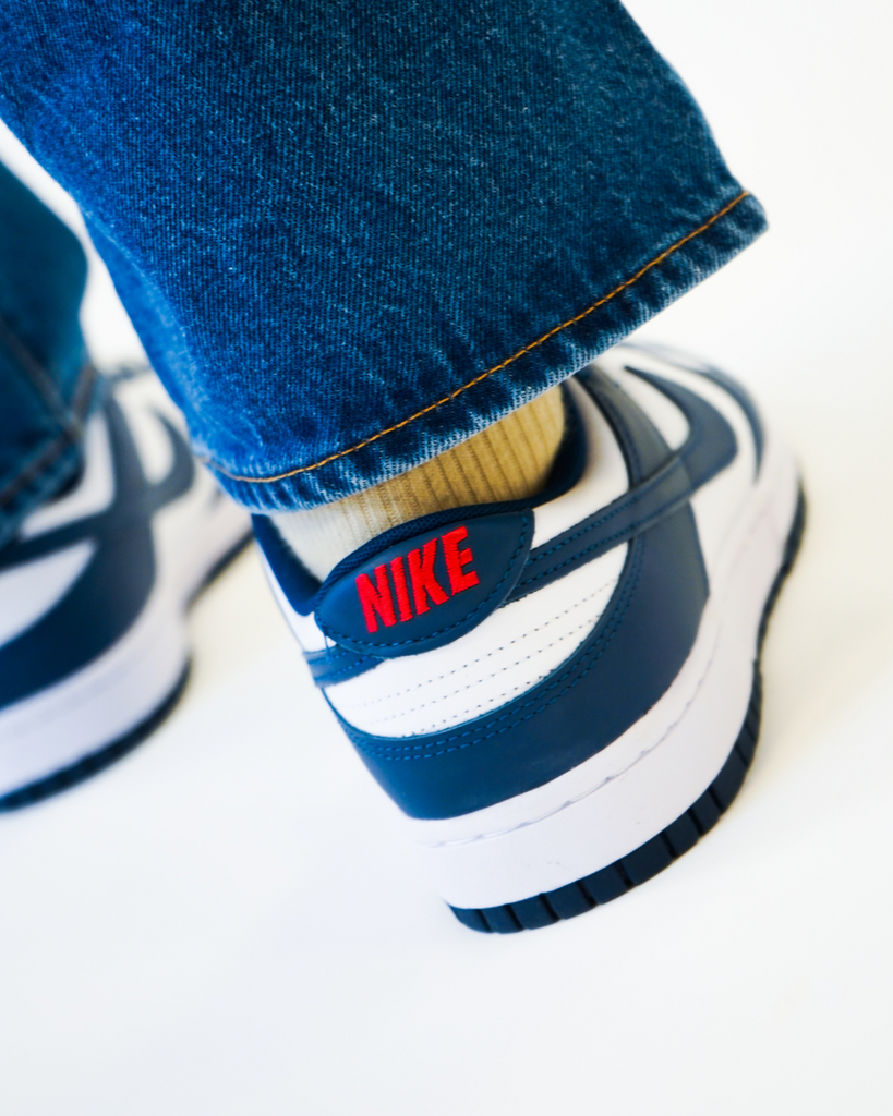 Et sikkert hit fra Nike med de navy og hvide paneler, hvor det røde Nike logo på selve stoffet giver den sidste kontrast til en helt igennem clean Dunk Low. Nike Dunk Low Retro Valerian Blue vil helt sikkert passe ind i de fleste sneaker rotationer.