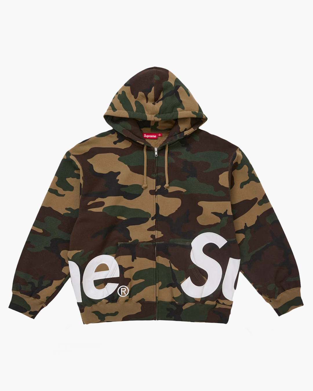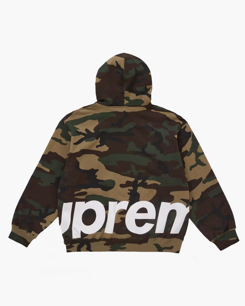 Supreme Big Logo Zip Up Hooded Sweatshirt Woodland Camo
